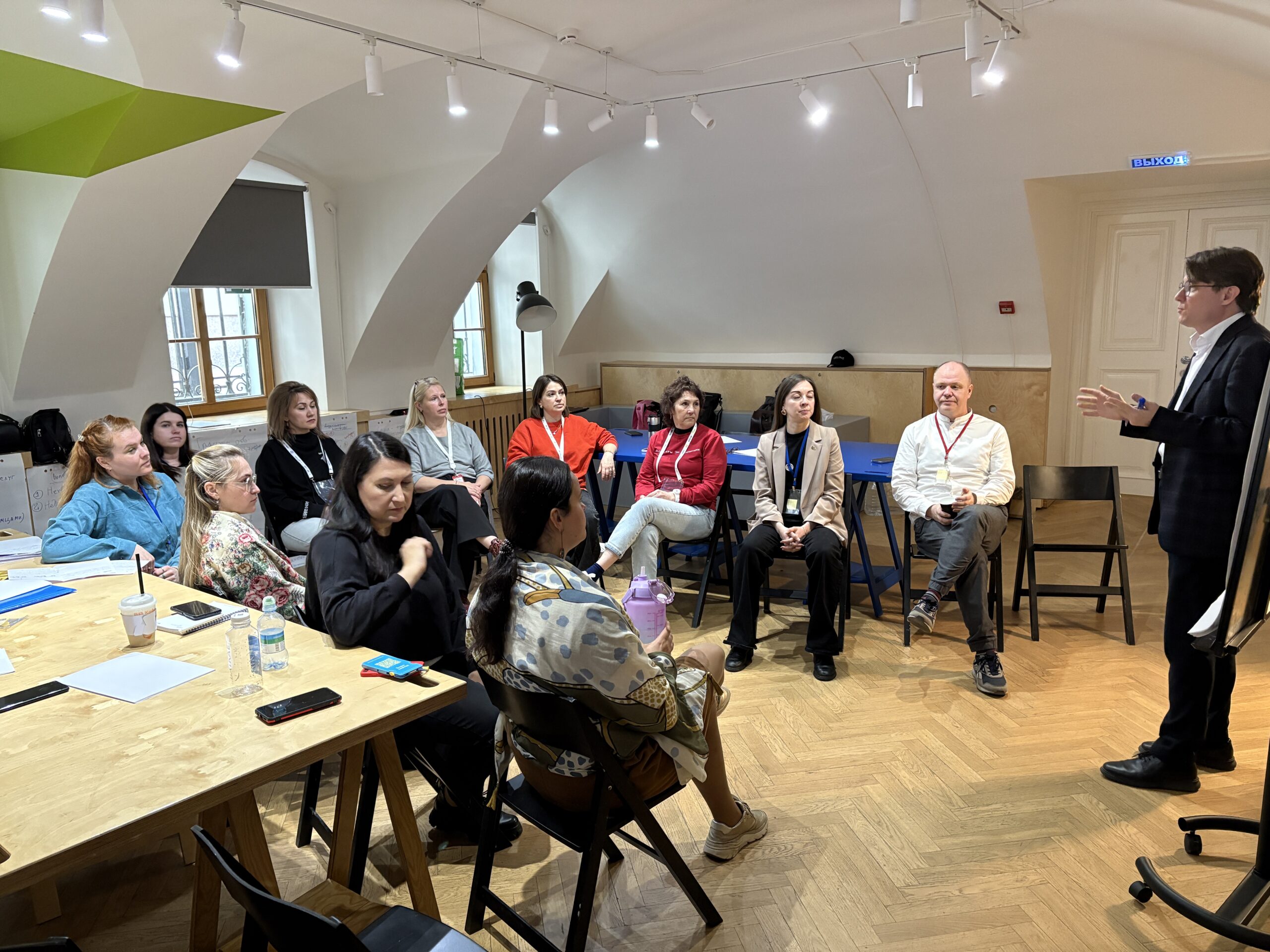Мы начали проект с семинара в московском пространстве «Среда Своих», где собрали представителей всех пилотных регионов и партнёров — движение «Даниловцы», центры местных сообществ в «Пятёрочке», производителя медицинской техники компанию ЕЛАМЕД.