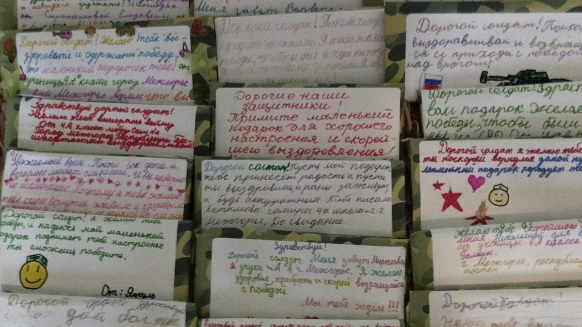 Ученики 4 А класса МАОУ СОШ №2 города Межгорье уже участвовали в акции и передали письма и сладкие гостинцы участникам специальной военной операции, проходящим лечение в госпитале.