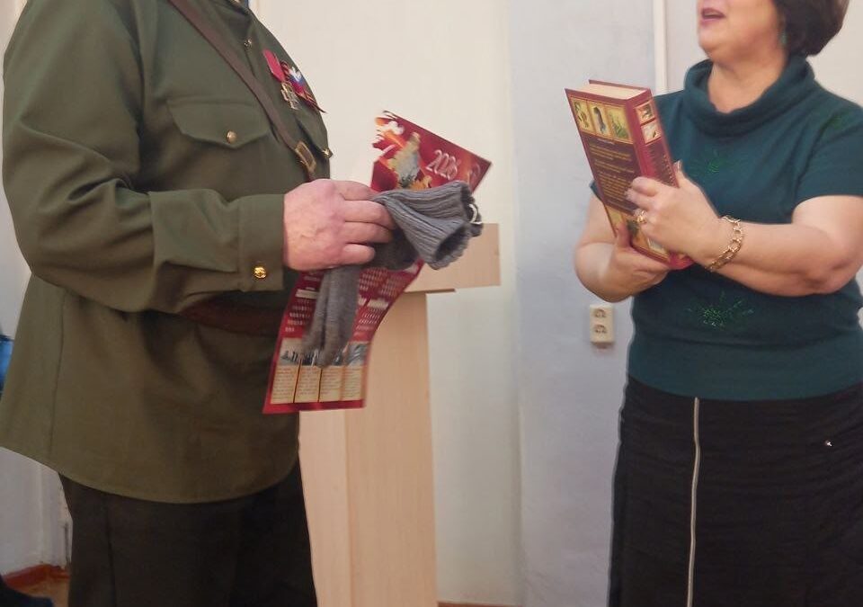 19.02.26 в библиотеке им. Т.Г. Шевченко прошла Всероссийская акция среди волонтеров культуры «Мы Вместе». Приняли активное участие члены клуба пенсионеров «Даро». «Серебряные» волонтеры культуры собрали железные баночки для окопных свечей, сшили повязки ожоговым, накладки на костыли, нижнее бельё и связали теплые носки.