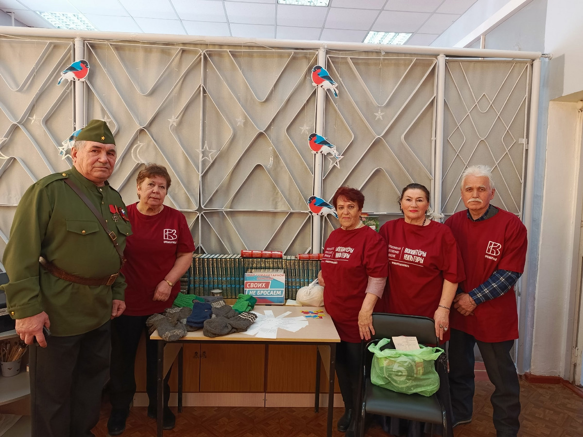 19.02.26 в библиотеке им. Т.Г. Шевченко прошла Всероссийская акция среди волонтеров культуры «Мы Вместе». Приняли активное участие члены клуба пенсионеров «Даро». «Серебряные» волонтеры культуры собрали железные баночки для окопных свечей, сшили повязки ожоговым, накладки на костыли, нижнее бельё и связали теплые носки.