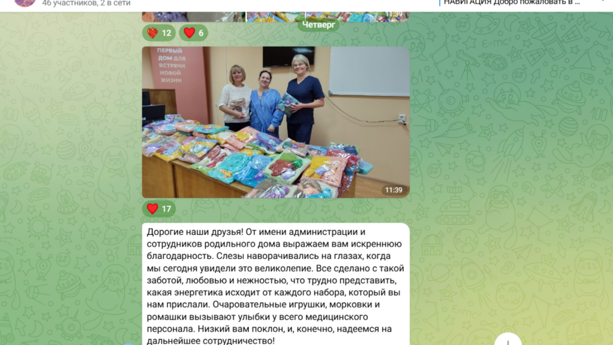 Мы выражаем искреннюю благодарность каждому волонтеру, который вложил частичку своего сердца в это доброе дело. Ваши руки подарили малышам не просто вещи, а настоящие объятия, тепло и веру в лучшее. Спасибо, что помогаете нам делать мир добрее, одну петельку за другой.