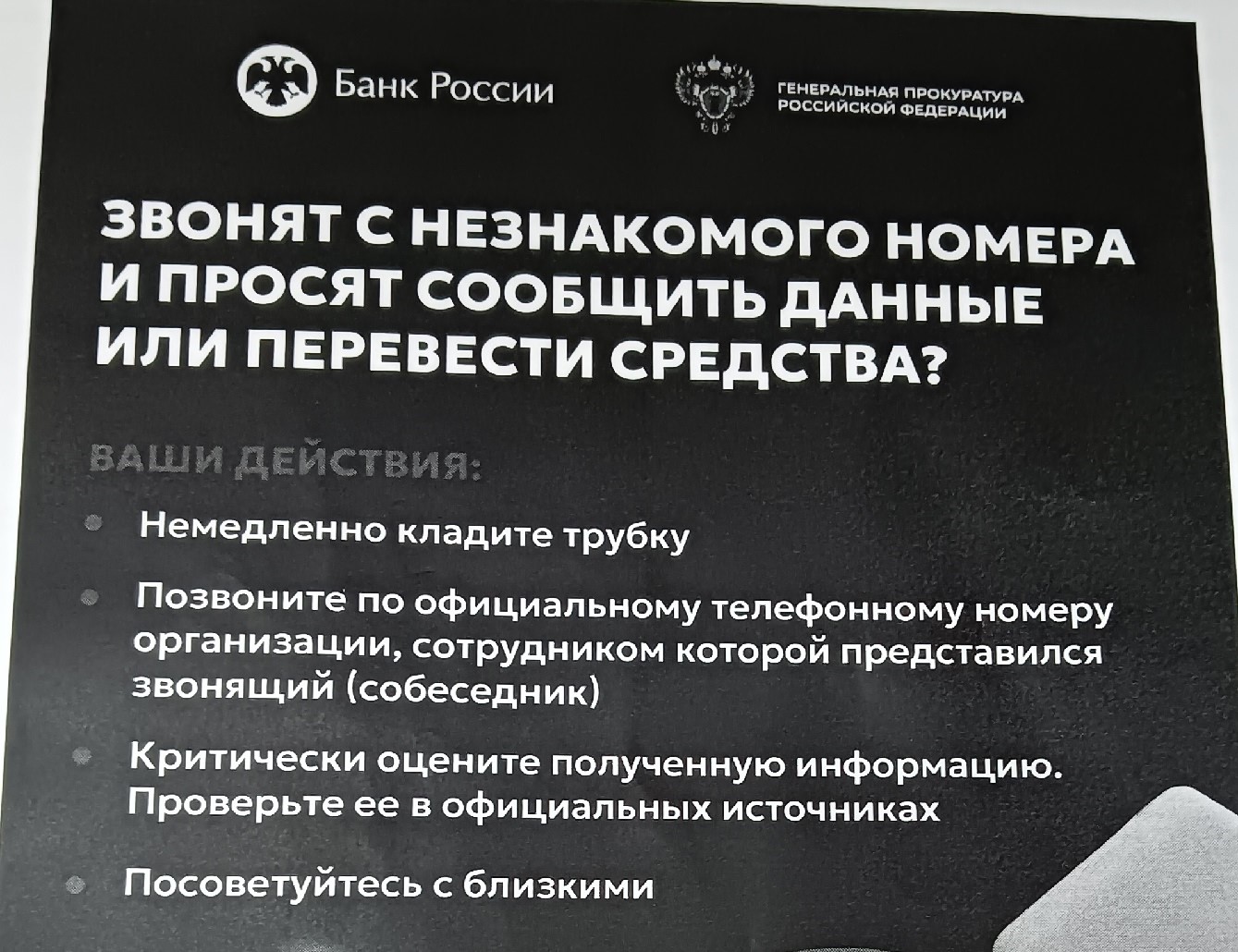 Важно помнить: знание — лучшая защита! Не доверяйте подозрительным звонкам, сообщениям и заманчивым предложениям, которые кажутся слишком хорошими, чтобы быть правдой. В случае малейших сомнений сразу обращайтесь в полицию.