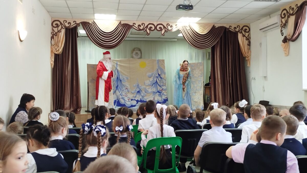 Сегодня ученики начальных классов МОАУ «СОШ 35» погрузились в мир сказки и волшебства, посетив театрализованное представление по сказке «Морозко», которое для них показали актеры театра «Кракатук».