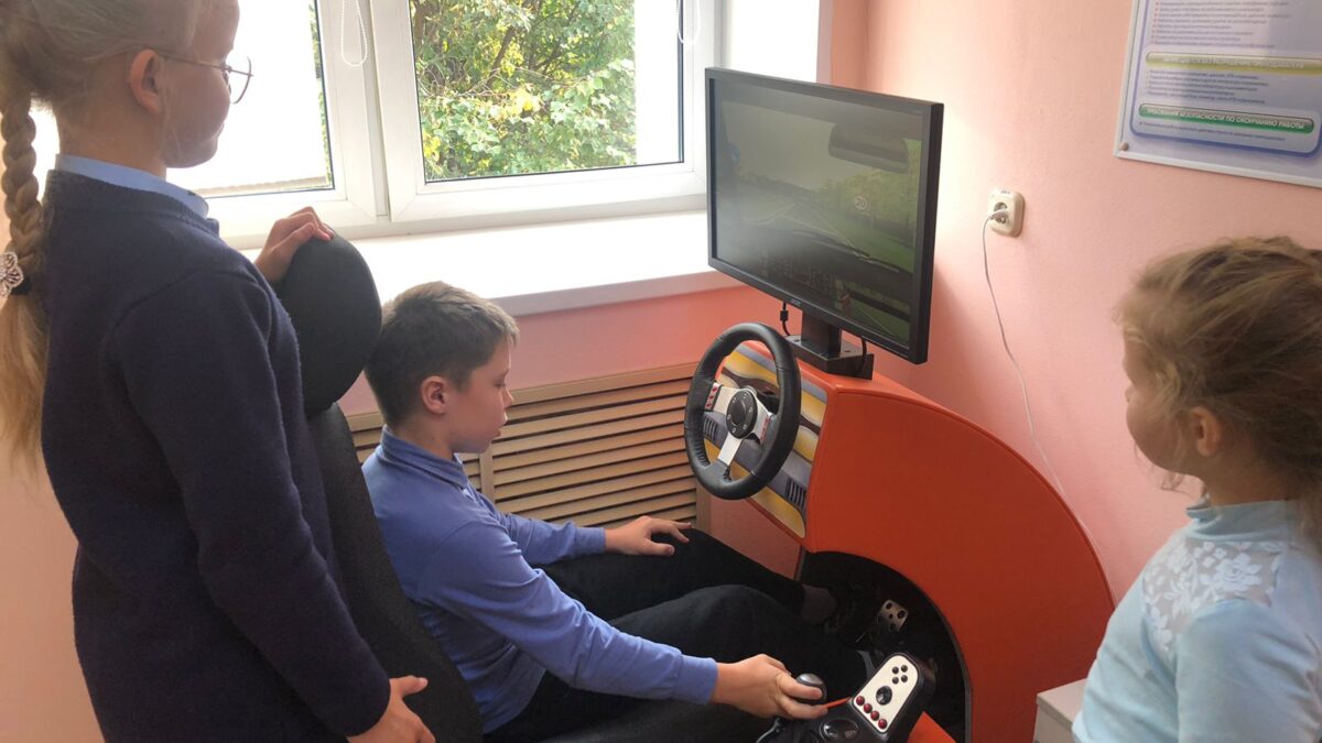 Муромский центр – еще и базовое учреждение для обучения правилам безопасности на дорогах. Для этого используют два компьютерных комплекса. На одном можно изучать ПДД и проходить тесты, второй является тренажером. Ребенок отрабатывает разные ситуации, разные дорожные условия. И тренажер определяет правильность действий.