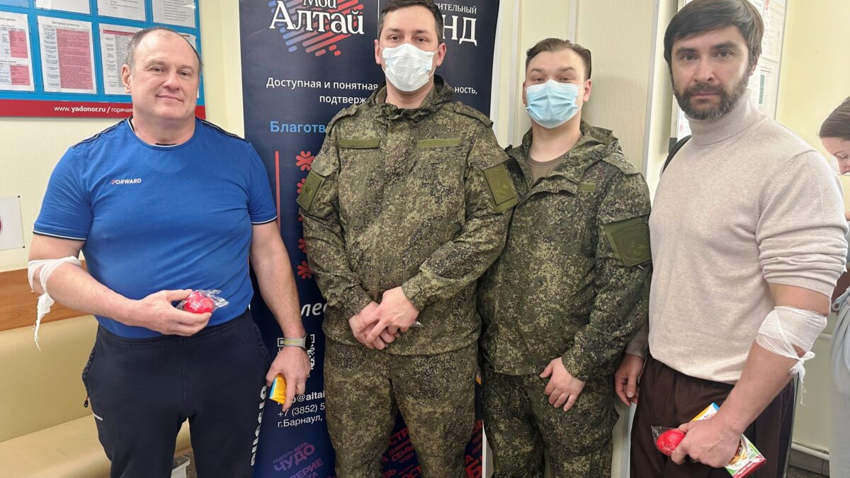Совместно с Алтайским краевым центром крови команда фонда собрала группу неравнодушных жителей региона: волонтёров Управления Федерального казначейства по Алтайскому краю, сотрудников международной логистической компании «ЛТБ», членов Федерации гиревого спорта Алтайского края и военнослужащих Воздушно-космических сил войсковой части 77640.
