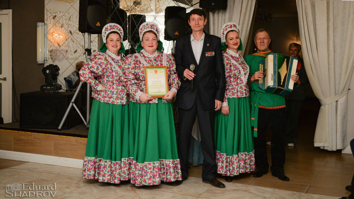 Сергей Грязнов, председатель ВРО ОООИВА «ИНВАЛИДЫ ВОЙНЫ», вручил благодарность коллективу вокальная группа «Владимир». Фото Э. Шадров.