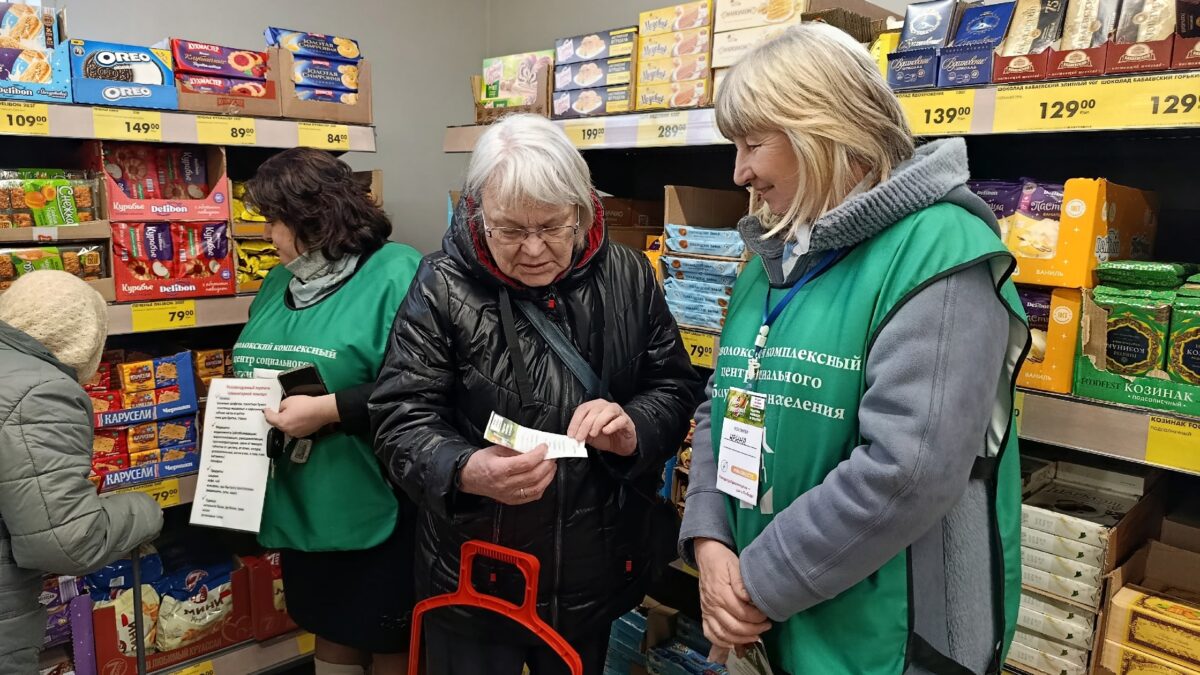 Волонтеры – представители «серебряного» возраста, активисты «Движения Первых» и сотрудники Наволокского КЦСОН – работали в магазинах города, где информировали покупателей о проводимой акции и помогали формировать продуктовые наборы.
