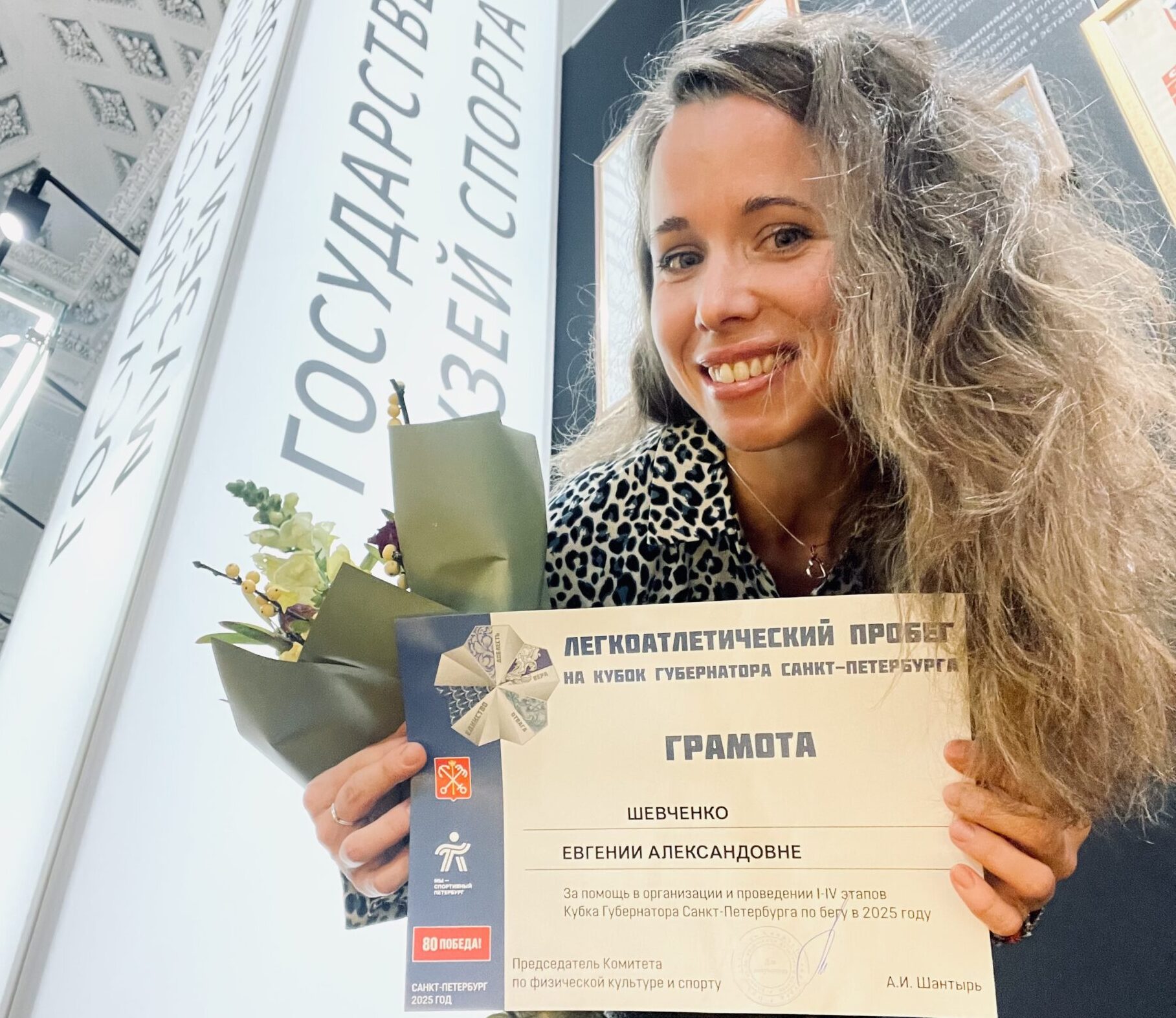Большая часть этих часов связана со спортивными мероприятиями города — марафонами, фестивалями, массовыми стартами, где я помогаю в организации, регистрации, сопровождении и поддержке участников. За 2024 год и 2025 год я отволонтёрила на четырёх этапах Кубка губернатора Санкт-Петербурга по бегу, за что была награждена грамотой и дипломом председателем Комитета по физической культуре и спорту Санкт-Петербурга А. В. Шантырем. Для меня это не просто знак признания, а подтверждение того, что добро и труд, вложенные в общее дело, действительно возвращаются — в виде доверия, уважения и новых возможностей помогать.