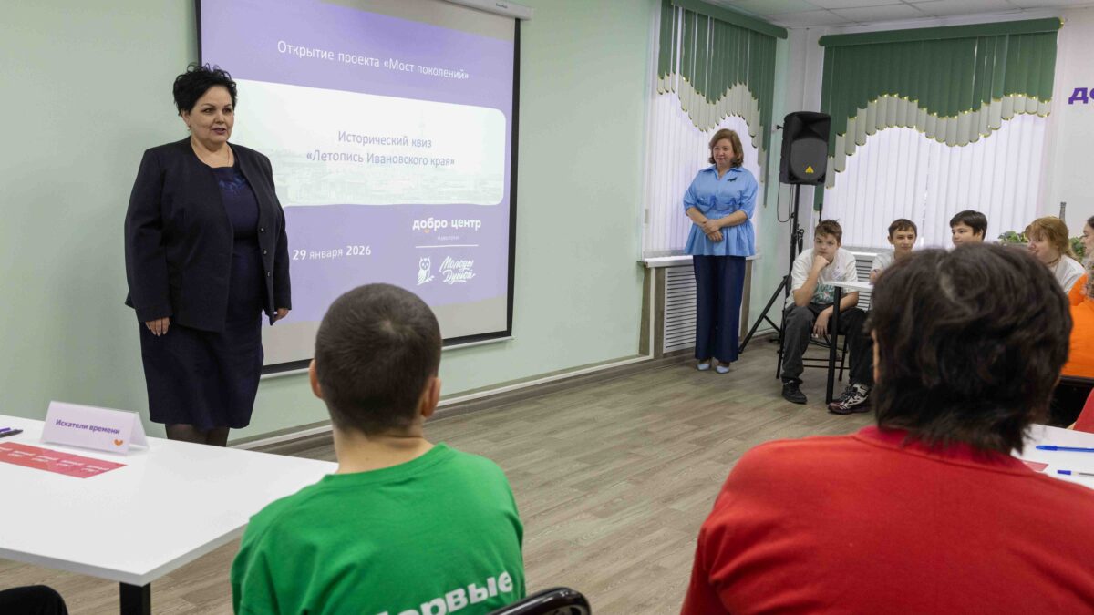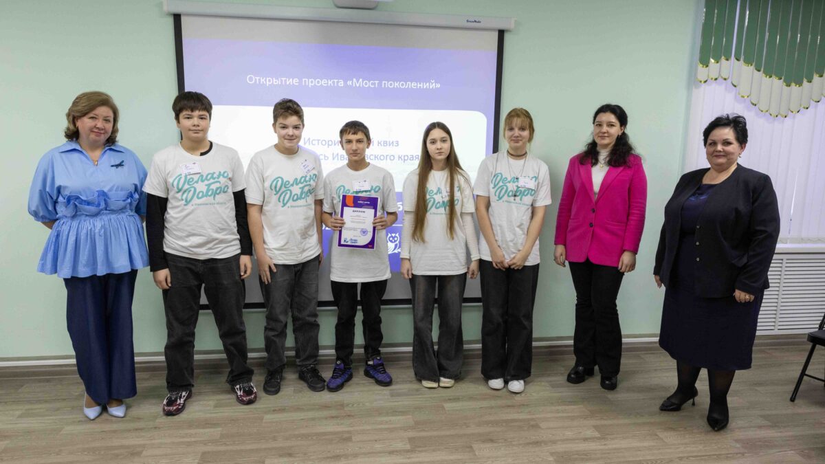 Проект «Мост поколений» — это серия интерактивных исторических квизов, где команды школьников и представителей старшего поколения вместе погружаются в прошлое. Главные цели — не просто проверка эрудиции, а живой диалог, преодоление изоляции пожилых людей, передача личного опыта и сохранение исторической памяти Кинешемского района и Ивановской области.