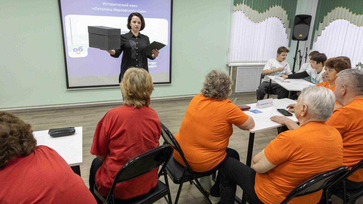 Центральным событием встречи стала первая игра — исторический квиз «Летопись Ивановского края», который провела руководитель проекта Татьяна Борисовна Хан. За звание лучших знатоков боролись две команды «серебряных» волонтеров и две команды школьников из МОУ средней школы № 4 г. Наволоки. Участников ждало 5 увлекательных туров: разминка, викторина, кроссворд, «черный ящик» и «хронограф». Вопросы касались достопримечательностей, знаменитых личностей и ключевых событий региона.