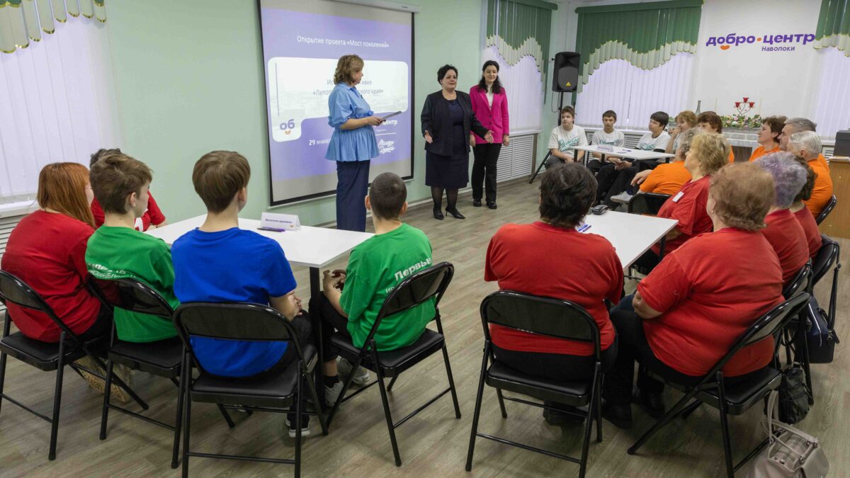29 января 2026 года в Добро.центре «Молоды душой» на базе Наволокского комплексного центра социального обслуживания населения состоялось открытие проекта «Мост поколений» — уникальной инициативы, созданной для укрепления связей между поколениями через совместное изучение истории. Проект реализуется в рамках национального проекта «Семья», федерального проекта «Старшее поколение» и региональной программы «Активное долголетие».