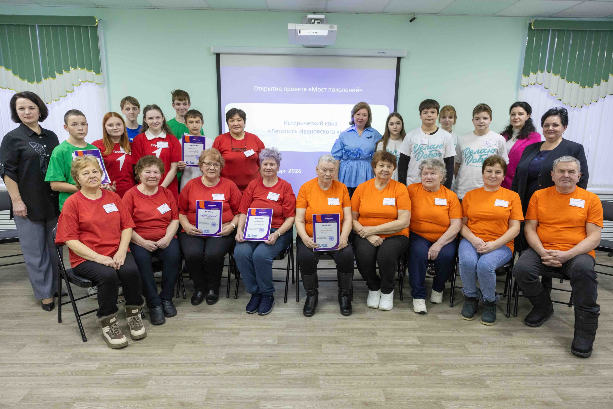 Проект «Мост поколений» — это серия интерактивных исторических квизов, где команды школьников и представителей старшего поколения вместе погружаются в прошлое. Главные цели — не просто проверка эрудиции, а живой диалог, преодоление изоляции пожилых людей, передача личного опыта и сохранение исторической памяти Кинешемского района и Ивановской области.