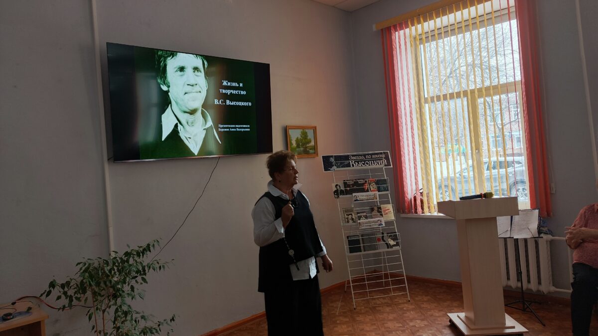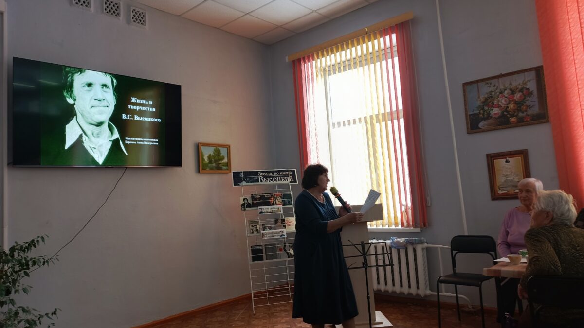 Музыкально — поэтическая встреча в клубе «Даро» открывает таланты, которые продолжают изучать творчество музыканта, поэта и актера Владимира Семеновича Высоцкого. Библиотекарь через презентацию рассказала о жизни и творчестве актера, музыканта и поэта. Книжная выставка послужила фундаментом для более детального изучения о В.С. Высоцком. Звучали песни и самого В. Высоцкого, а далее клубовцы исполнили ряд известных песен автора и композитора. Игра на гитаре Симоновой Т.Е. стала украшением творческой встречи.