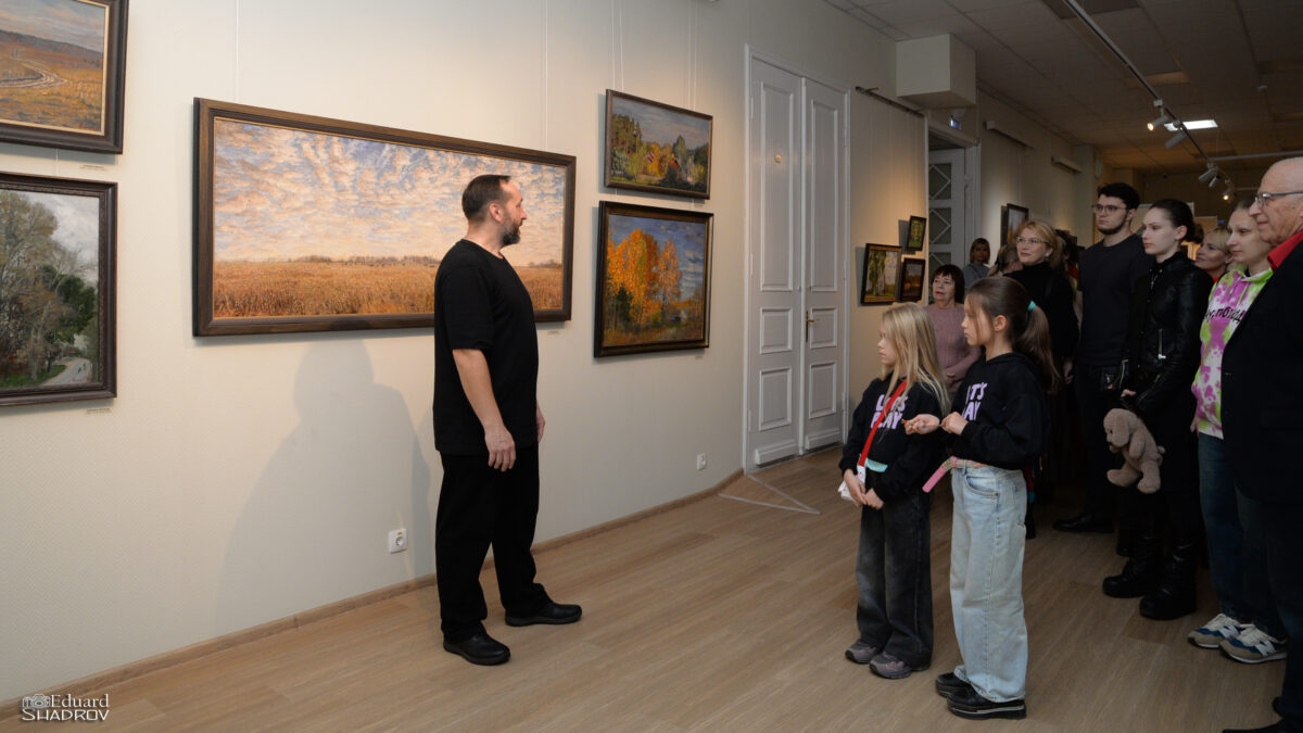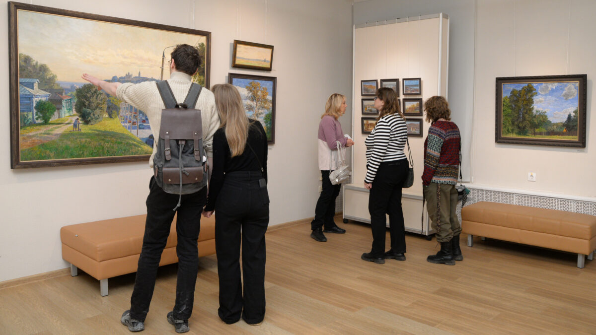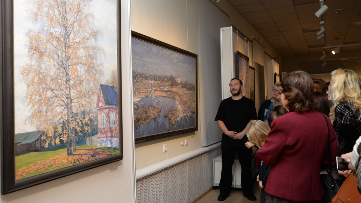 На «Ночи искусств» гости увидели юбилейную выставку Андрея Мочалина, живописца и пейзажиста-реалиста. Его работы посвящены российской глубинке.