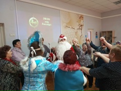 Программа была насыщена поздравлениями, играми, шутками, гаданиями, с забавами Снегурочки и Деда Мороза, звучали частушки и Новогодние песни и хороводы с главными героями праздника.