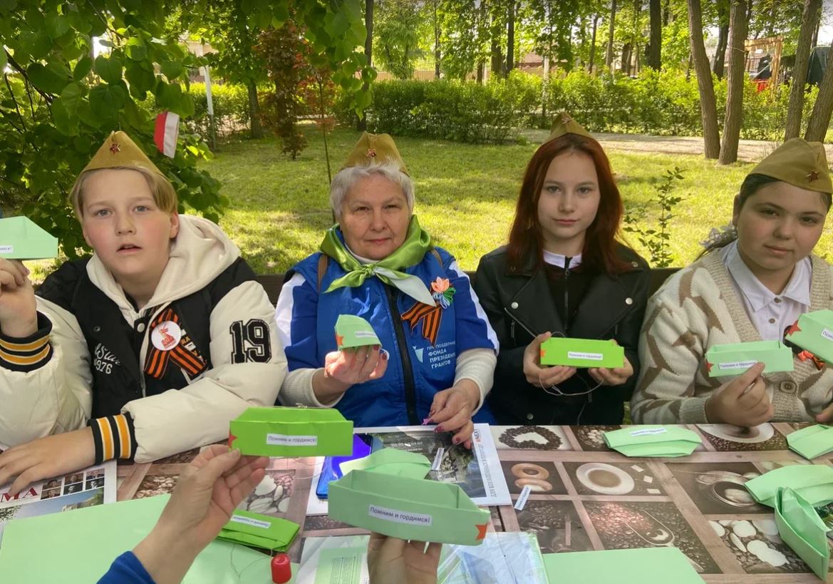 ДоброЦентр #МолодыДушой стал сердцем этого дня. Здесь, за столами, усыпанными цветной бумагой, вместе трудились школьники, серебряные волонтёры и просто прохожие, которым не хватило духу пройти мимо. Ножницы скользили по картону, пальцы старательно загибали уголки — и вот уже на ладонях оживала миниатюрная фронтовая пилотка.