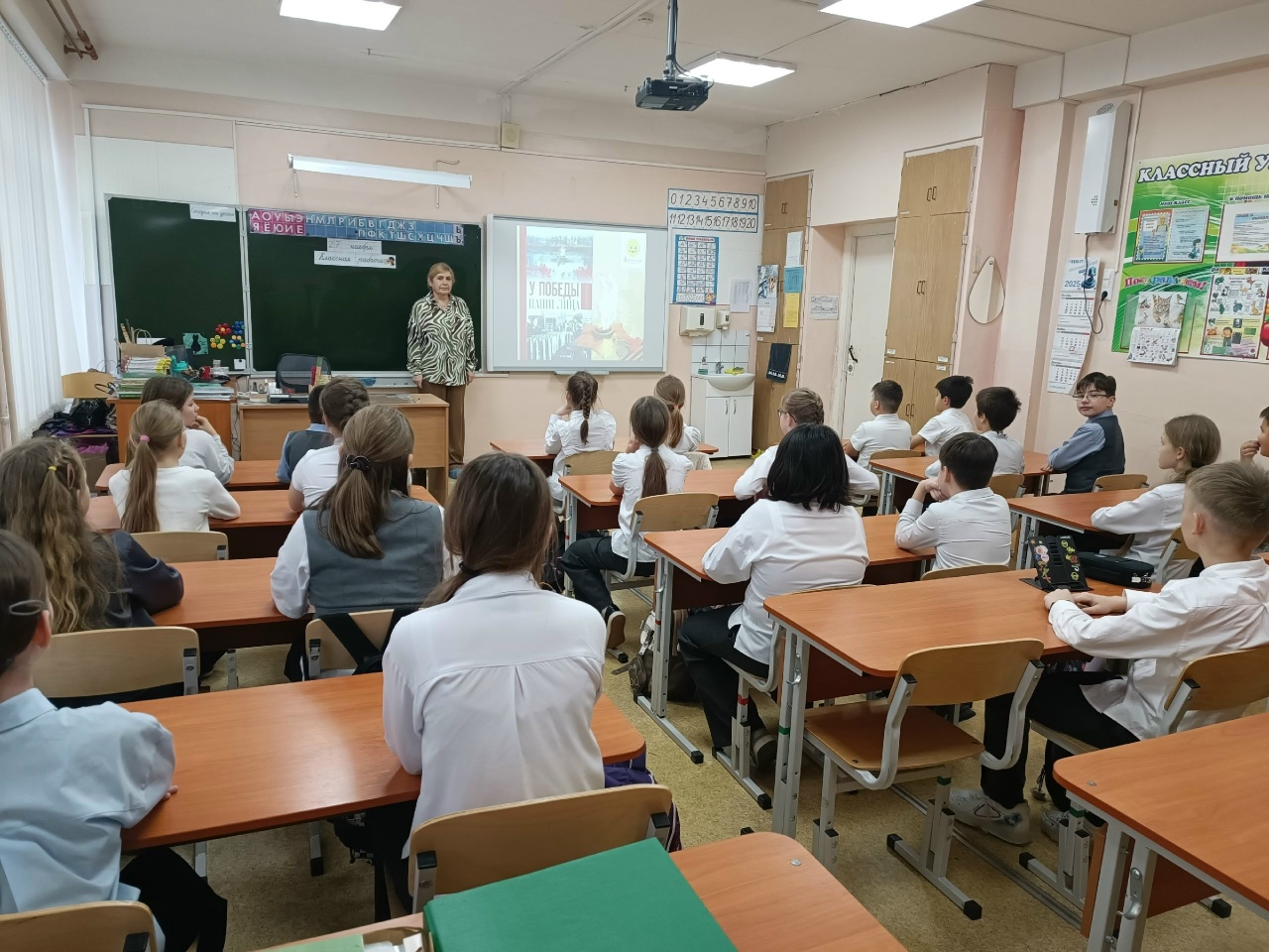 Волонтёр благотворительного фонда «Доброе Дело» Ирина Николаевна провела незабываемый урок для четвероклассников школы #9 города Первоуральска, посвященный Великой Отечественной войне.