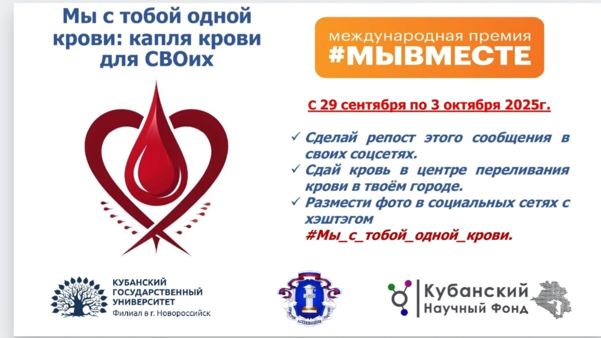 В рамках акции: «Мы с тобой одной крови: капля крови для СВОих» на базе филиала ФГБОУ ВО «Кубанский государственный университет» в г. Новороссийске, организованной доцентом кафедры гуманитарных дисциплин, кандидатом юридических наук, членом Ассоциации юристов России, экспертом Кубанского научного фонда Телегиной Еленой Геннадьевной 29 сентября 2025г. состоялся перформанс «Сердце донора».