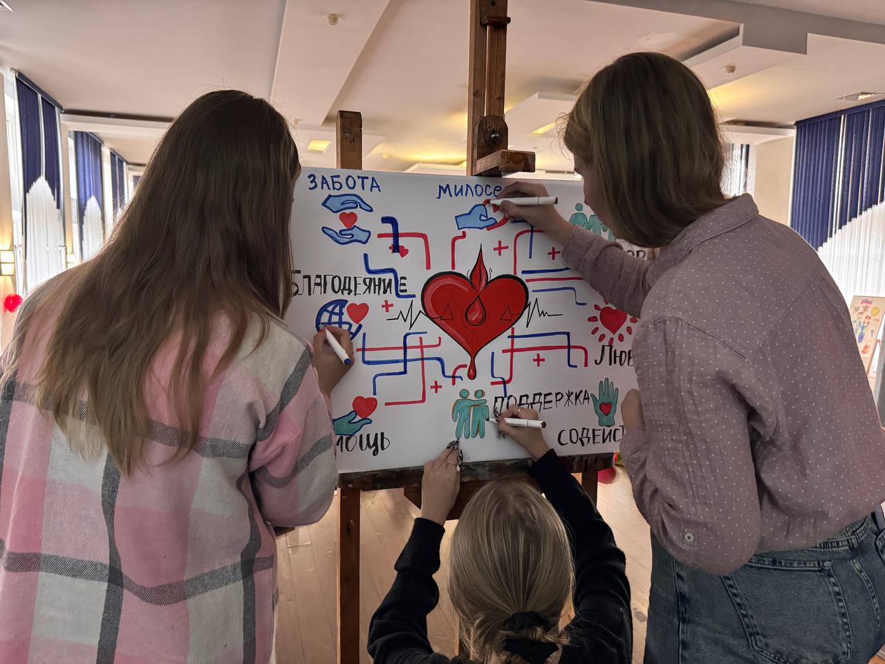 Во время монолога студентов направления подготовки: «Юриспруденция» о том, кто такой донор, какие качества ему присущи, на ватмане были записаны качества, присущие донорам. Затем присутствующие в зале выходили на сцену и на свободном ватмане писали качества, присущие донору. За совпадающие слова, написанные ребятами, среди которых были школьники, кадеты, студенты СПО, присутствующие получали в качестве поощрения вкусный подарок — гемотоген.