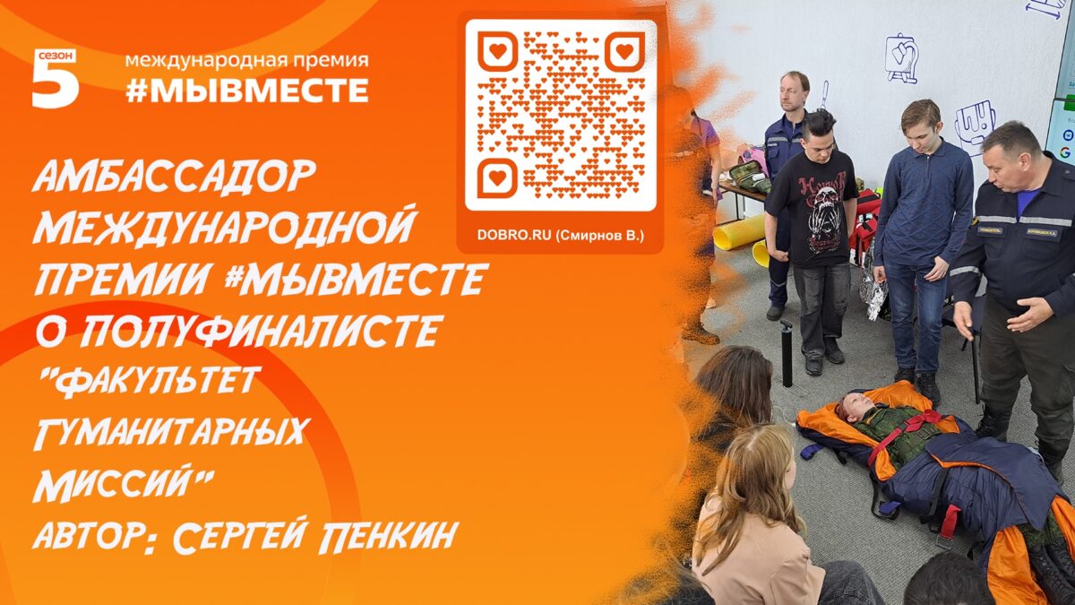 Проект полуфиналист в номинации : Устойчивое будущее — «Факультет Гуманитарных Миссий» — автор Сергей Пенкин. Совместно с комитетом по молодёжной политики Ивановской области и ВОМО «ВСКС», я реализую масштабный региональный проект: «Факультет Гуманитарных Миссий» Сутью проекта, является региональный учебный курс по подготовке студентов Вуз, СПО и школьников старших классов к реагированию на возможные нештатные ситуации и возникновению ЧС различного уровня угрозы. Природные пожары, паводки , техногенные ЧС и другие нештатные ситуации – те вызовы к которым готовятся студенты в рамках этого курса, укрепляя систему Гражданской обороны региона, а так же, готовность к выездам на ликвидацию ЧС в другие регионы России, в составе профессиональных или добровольческих спасательных команд и гуманитарных миссий, в рамках которых оказывается помощь населению, восстановление инфраструктуры пострадавших территорий, а так же, осуществляется помощь и усиление работы Аварийно-спасательных служб.