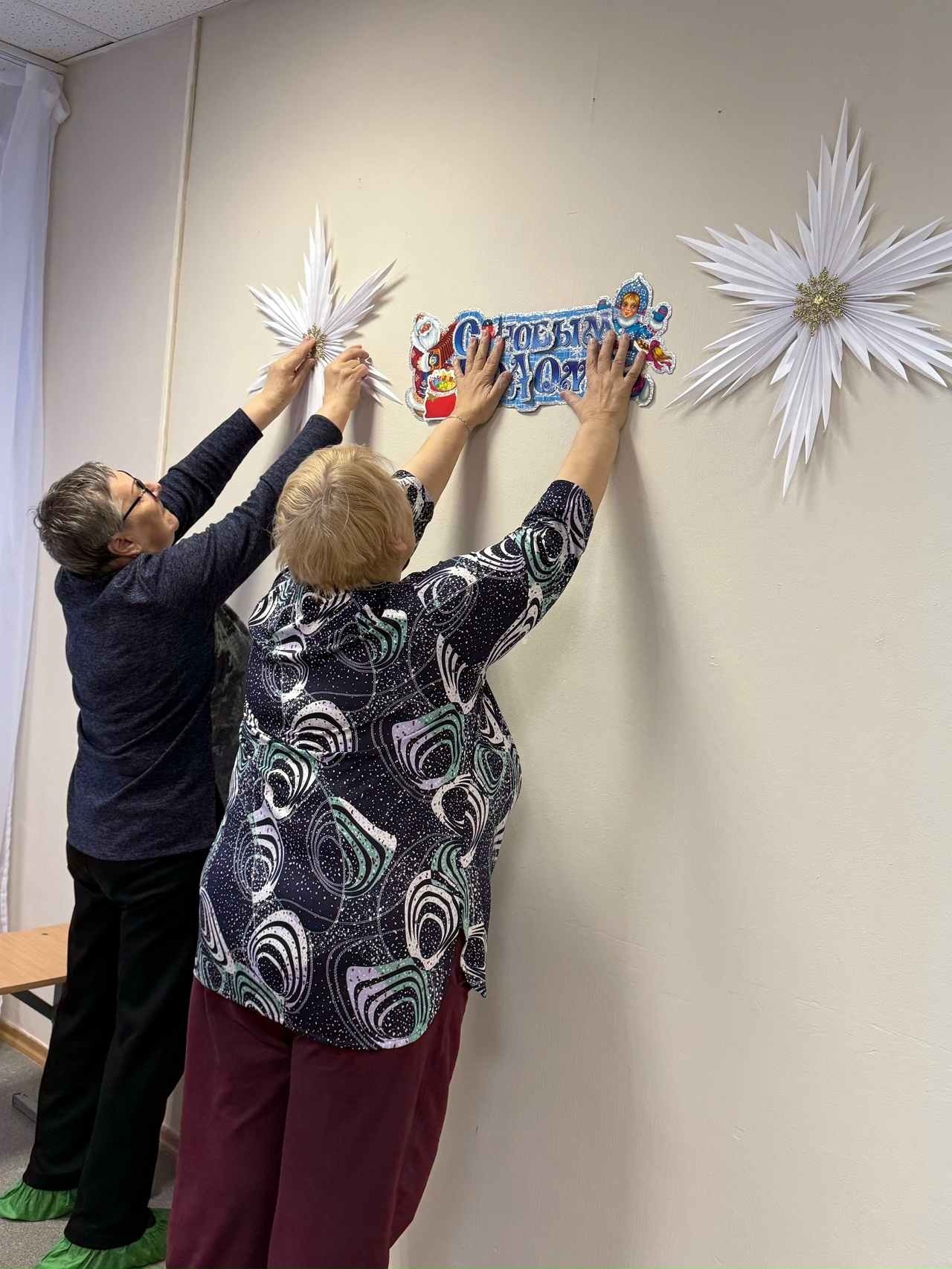 Новый год стучится в двери! А праздничное настроение само себя не создаст. Поэтому за дело взялись «серебряные» волонтеры! Вместе со специалистом организационно-консультативного отделения Елизаветой Лупановой они задорно и со вкусом украсили актовый зал «ДомАктив».