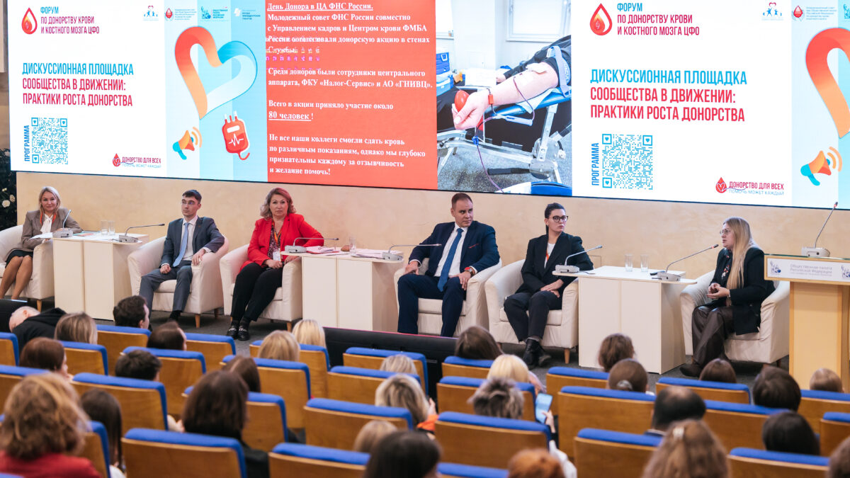 Представители Росмолодежи, молодежных общественных советов при федеральных органах исполнительной власти, Движения Первых, Лидеров России, донорских движений Москвы и ЦФО презентовали свои лучшие практики организации донорских проектов.