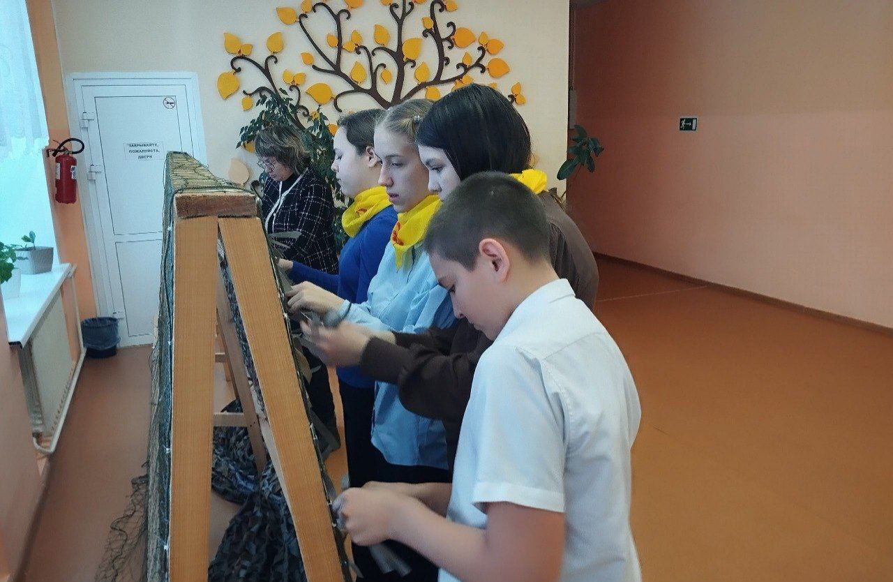 Волонтёры собираются в местном сельском клубе и дружно плетут маскировку для наших земляков. Волонтёры говорят, что такие сети помогут военным скрыть от глаз противника технику, инженерные сооружения и места укрытия самих бойцов, тем самым спасают жизни бойцов. — «Даже 10 минут перемены хватает, чтобы начать и закончить рядочек маскировочной сети» — говорят ребята.