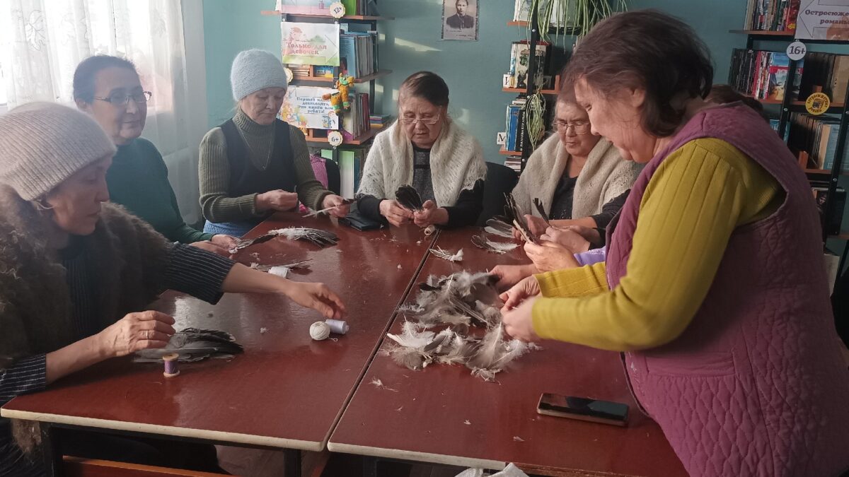 Старшее поколение собрались в Батериковском Доме культуры Березовского округа на мастер-класс по плетению кисточек из гусиного пера.
