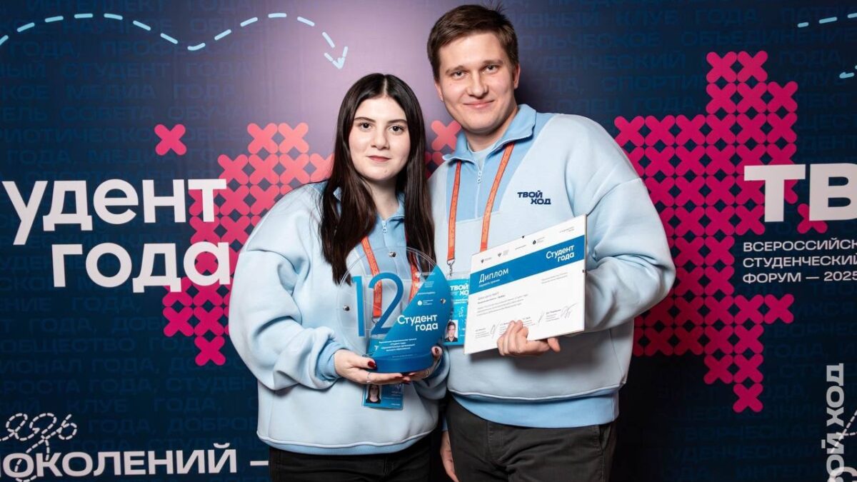 С 13 по 16 декабря 2025 года в Москве в рамках всероссийского студенческого форума Твой Ход состоялся финал Всероссийской премии «Студент года». Премия является ежегодной, проводится в 15 раз и направлена на выявление и поддержку лучших студентов и практик организации деятельности в нашей стране по различным направлениям деятельности.