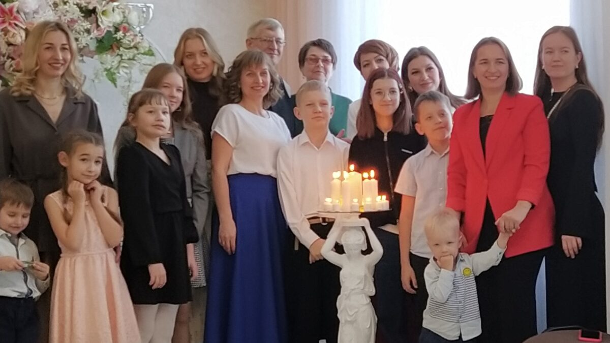Вальс Мельденсона и свидетельство о браке были юбилейные, к поздравлениям присоединились самые дорогие участники мероприятия — дети и внуки. И от зажженного семейного огня они тоже зажгли свои очаги, символизирующие теплый и уютный дом.