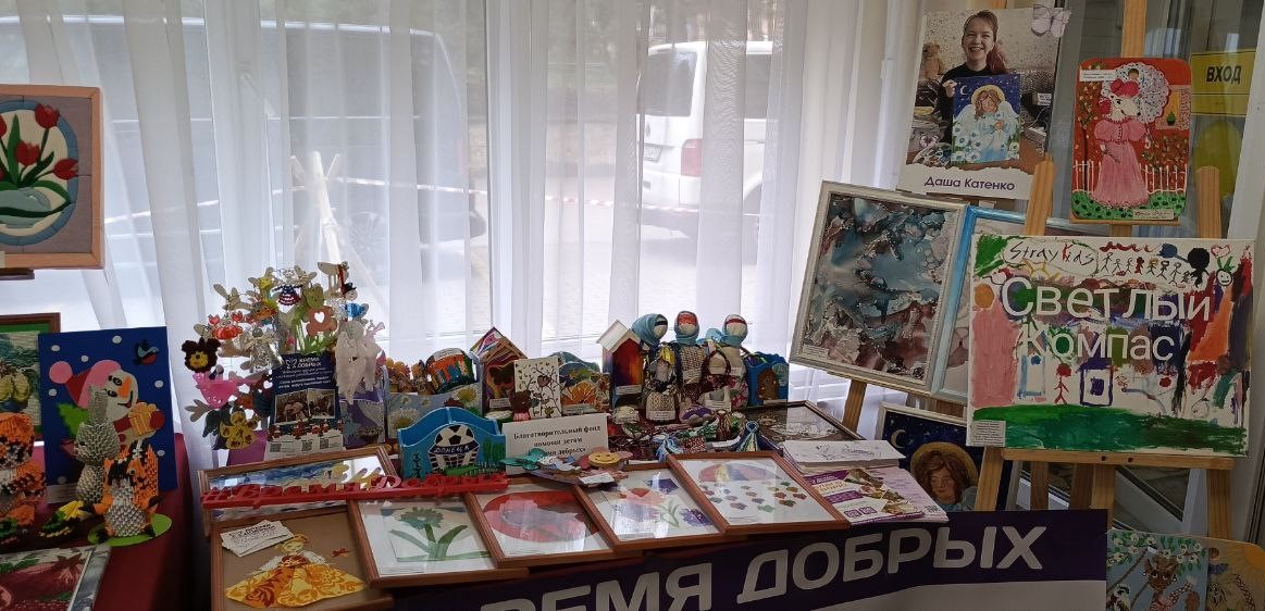 В выставочном зале царило буйство красок и форм. Здесь можно было увидеть, как по-разному «видят мир» юные художники с особенностями здоровья. Их работы, выполненные в самых неожиданных техниках, заставляли остановиться и задуматься. Особое восхищение гостей вызвали картины, рождённые в уникальных мастерских благотворительного фонда «Время добрых» и хосписа «Одуванчики». Подопечные этих организаций представили целую вселенную, созданную своими руками за год: от медитативных рисунков на соли и завораживающих разводов эбру до ярких композиций спиртовыми красками. Рядом уютно расположились расписные гипсовые фигурки, изящные брелоки из бусин и эпоксидной смолы, предметы в технике декупаж, традиционные куклы-мотанки, хранящие тепло детских ладоней, и практичные органайзеры с чайными домиками, раскрашенные акрилом в жизнерадостные узоры. Каждая из этих вещей была не просто поделкой, а материализованной частичкой души ребёнка, его мечтой и способом диалога с миром.