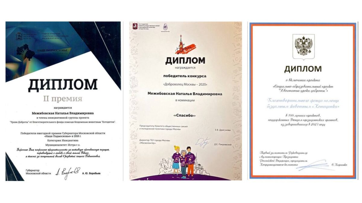 В 2018 году стала победителем ежегодной премии Губернатора Московской области «Наше Подмосковье» с проектом «Уроки Доброты».