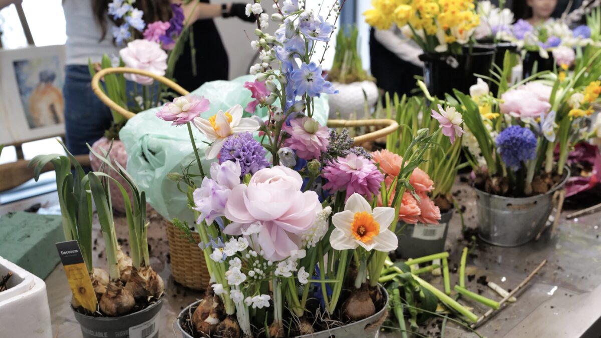 В ходе мастер‑класса гости создавали весенние композиции: кашпо с луковицами первоцветов, тюльпанами, нарциссами и гиацинтами.