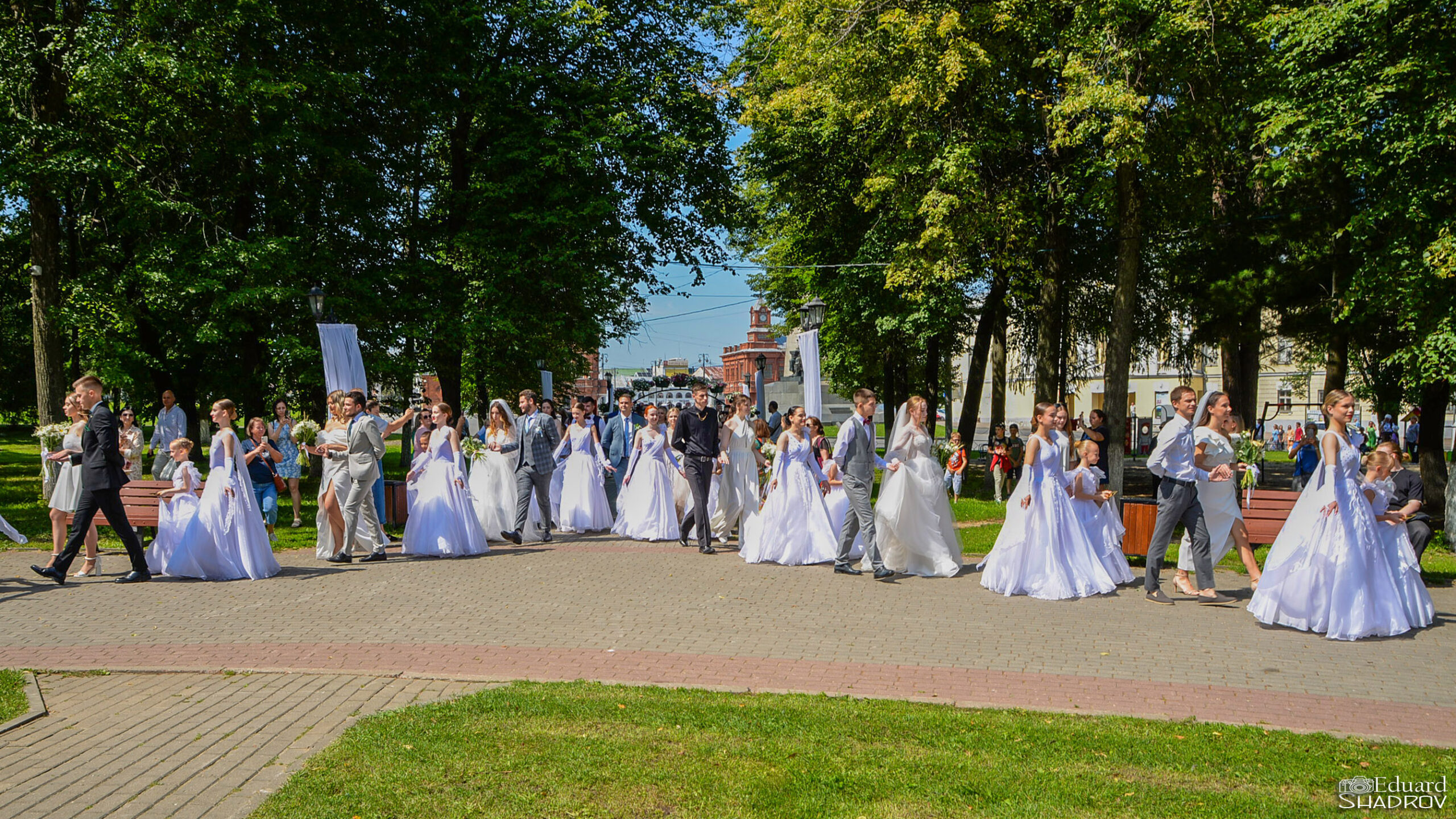 8 июля, в День семьи, любви и верности, во Владимире девять пар связали себя узами брака в рамках всероссийской акции «День рождения семьи». Сначала они оформили все необходимые документы в ЗАГСе, а затем их ждала торжественная выездная регистрация в Парке культуры и отдыха «Липки». В центре города пары окружили заботой и вниманием, а также небольшим камерным концертом.