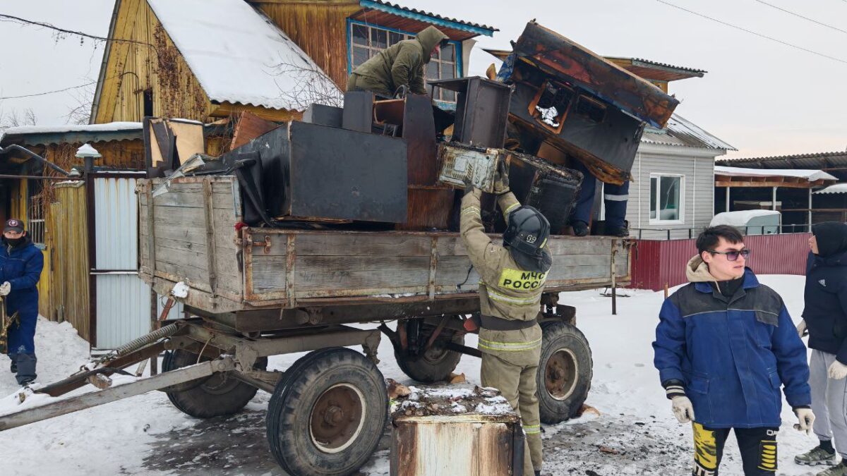 Продолжается помощь семье погорельцев. Вчера была организована работа по вывозу сгоревших вещей, мебели на машине коммунхоза, специалистами Шушенской пожарной части — 68, КГБУ «Спасатель», волонтерами из Шушенского сельскохозяйственного колледжа, Союза ветеранов боевых действий «Звезда».