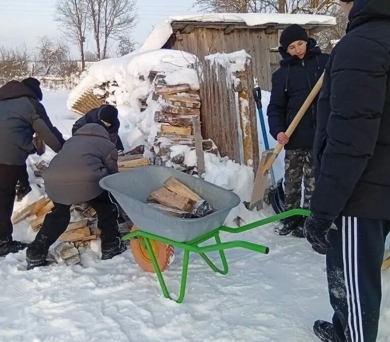 «Ребятам же мороз – не помеха, особенно для добрых дел. Быстро справились с работой, а Татьяна Витальевна их ещё и горячим чаем с блинами напоила», — рассказывают добровольцы.
