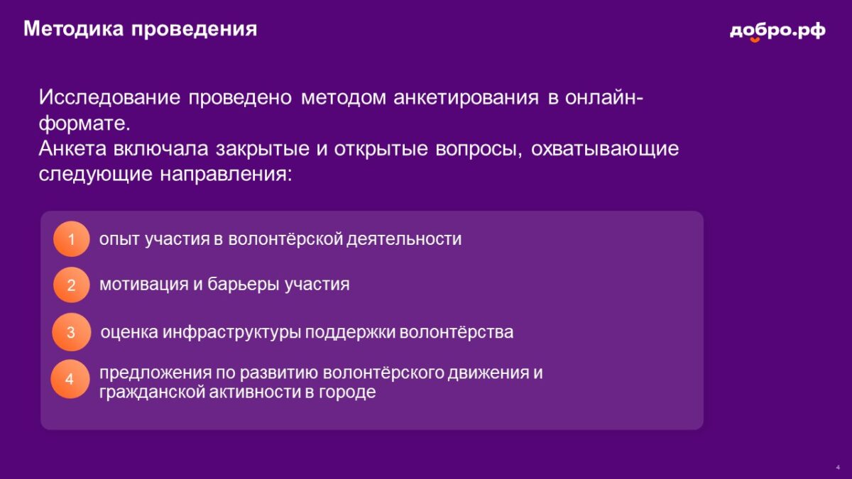 Целью исследования было изучить состояние гражданской активности и вовлеченности населения в волонтёрскую деятельность, а также выявить ключевые потребности и проблемы развития волонтёрского движения и СО НКО в Самаре в 2024–2025 гг.
