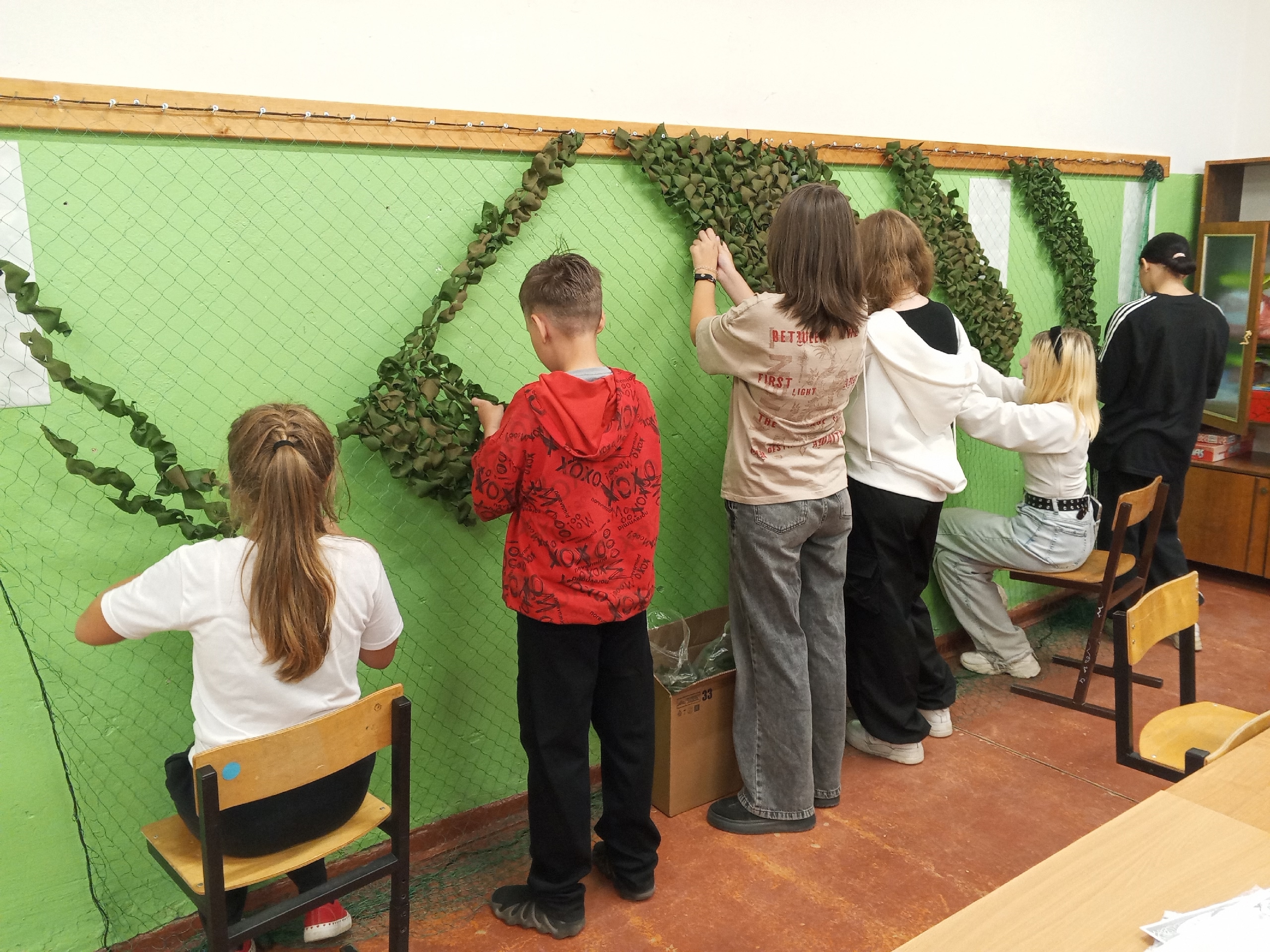 Вот и начался новый учебный год.Участники волонтёрского отряда «Лига добра» и Муниципального Доброцентра Пудожского района приступили к плетению новой маскировочной сети для военнослужащих СВО, а также пишут письма бойцам.