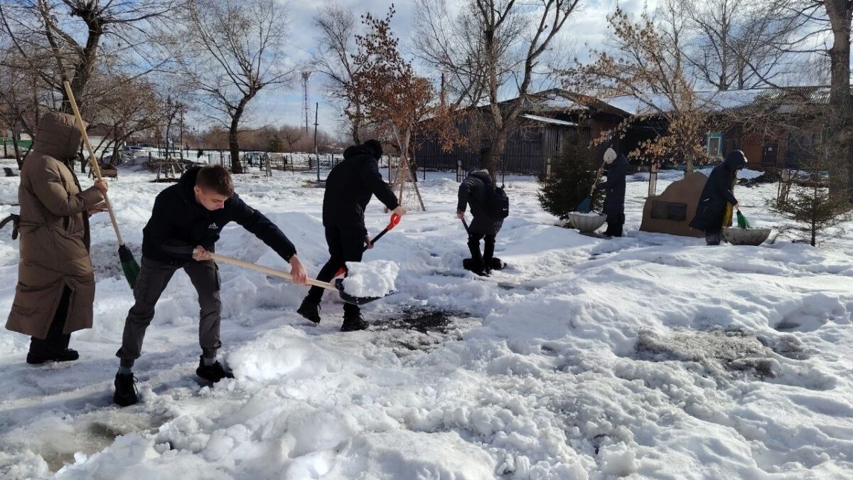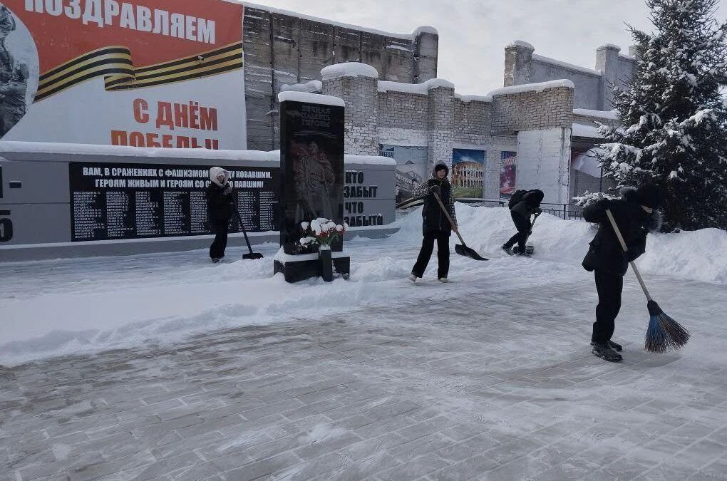Добровольцы расчищают снег с дорожек и лавочек, чтобы 23 февраля жители округа могли беспрепятственно прийти к мемориалам и отдать дань памяти героям.