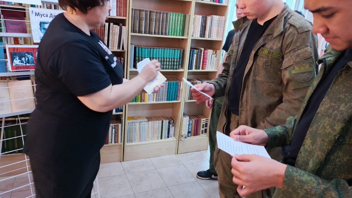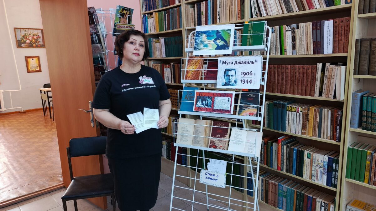 Волонтеры культуры библиотеки им. Т.Г. Шевченко провели с молодежью Всероссийскую акцию «Стихи в кармане». Тема акции: «Муса Джалиль: приговоренный к бессмертию» к 120 — летию со дня рождения поэта.