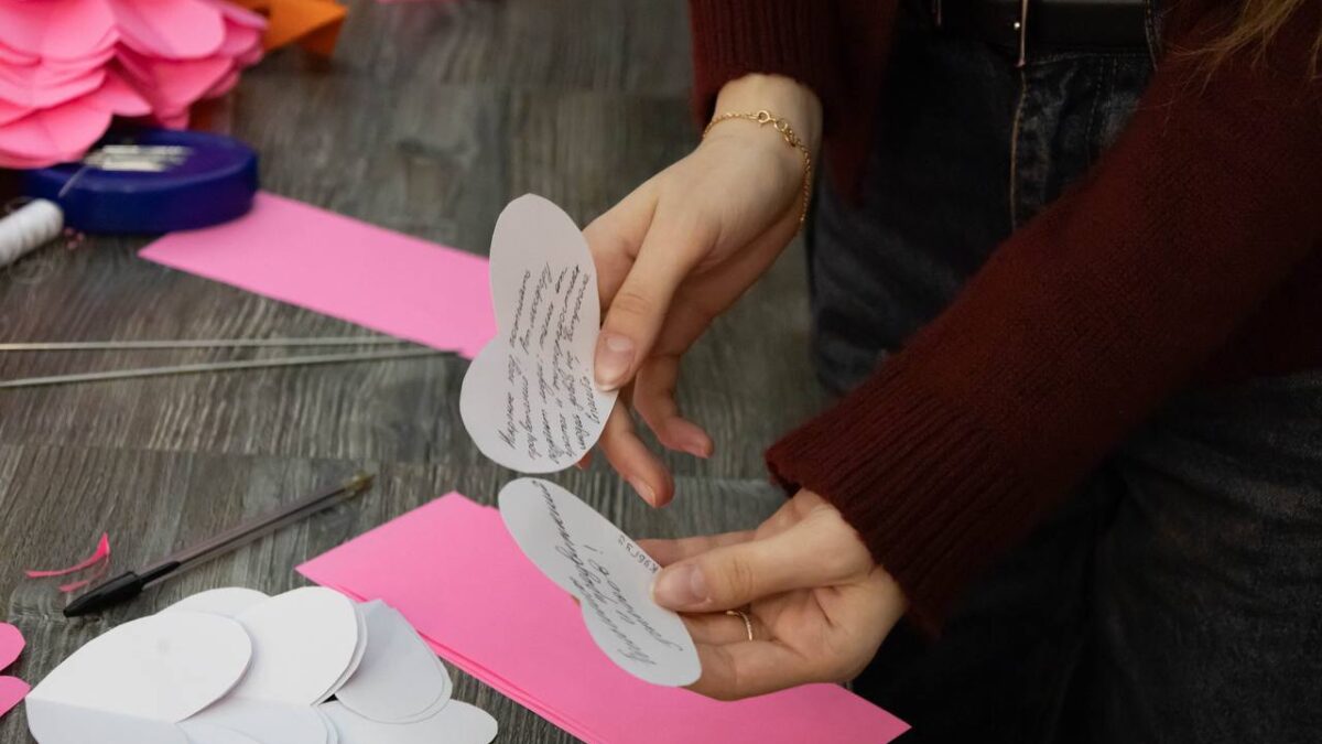 В ходе занятия волонтеры изучили несколько жестов, необходимых для первичного контакта с людьми, имеющими нарушение слуха, а также узнали основные правила взаимодействия с людьми с инвалидностью.В завершение дня участники написали пожелания сотрудникам и гостям ОККОЛО — они останутся в пространстве кластера.