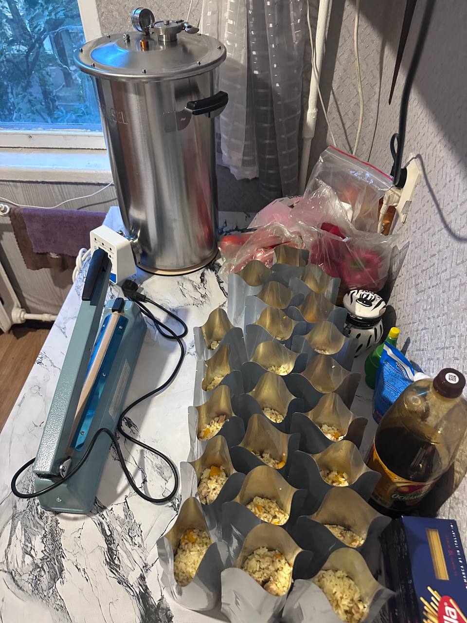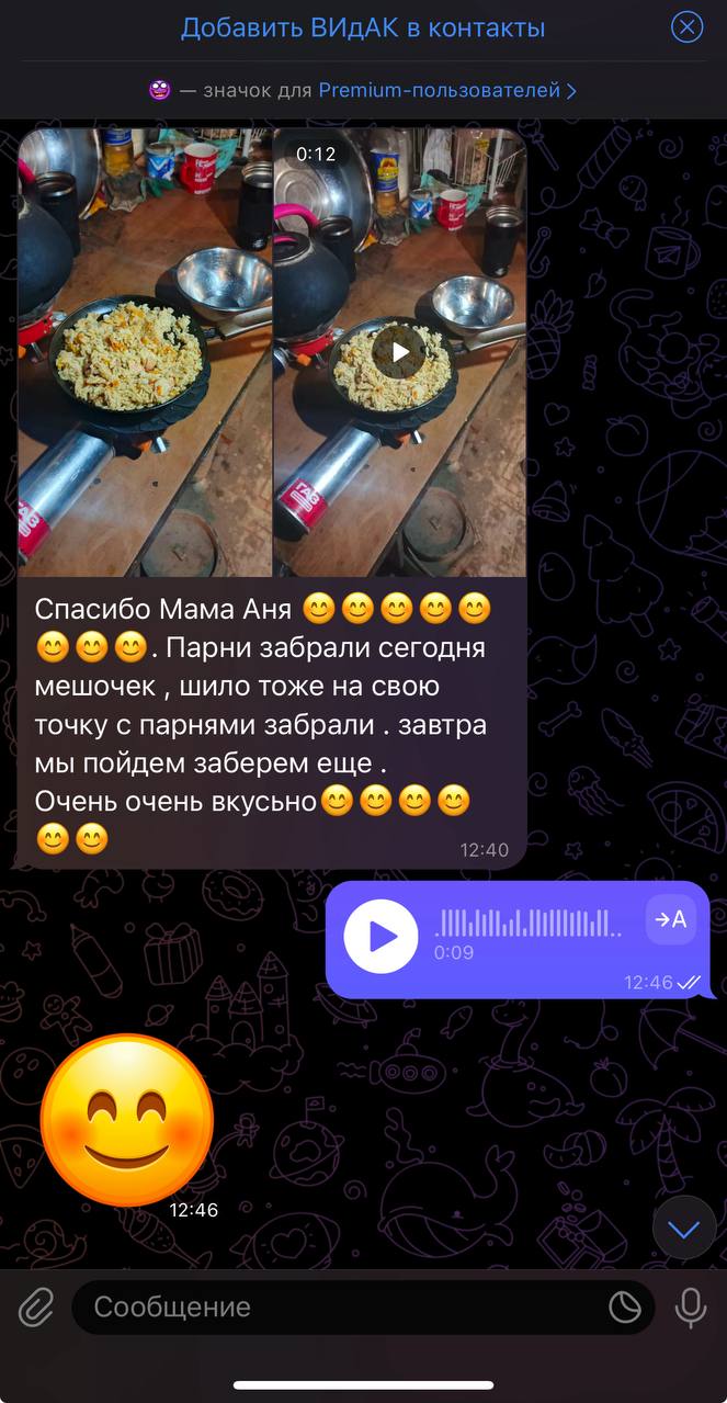 Что бы у ребят были сили, им нужно питание! В начале моей деятельности я ездила на передовую и готовила там для ребят еду. Но мы не стоим на месте, и сейчас заготавливаем домашнюю готовую еду порционно в реторт пакетах. Данная продукция хранится без холодильника до одного года, что дает возможность заготавливать большие объемы запаса еды и доставлять ребятам на позиции.