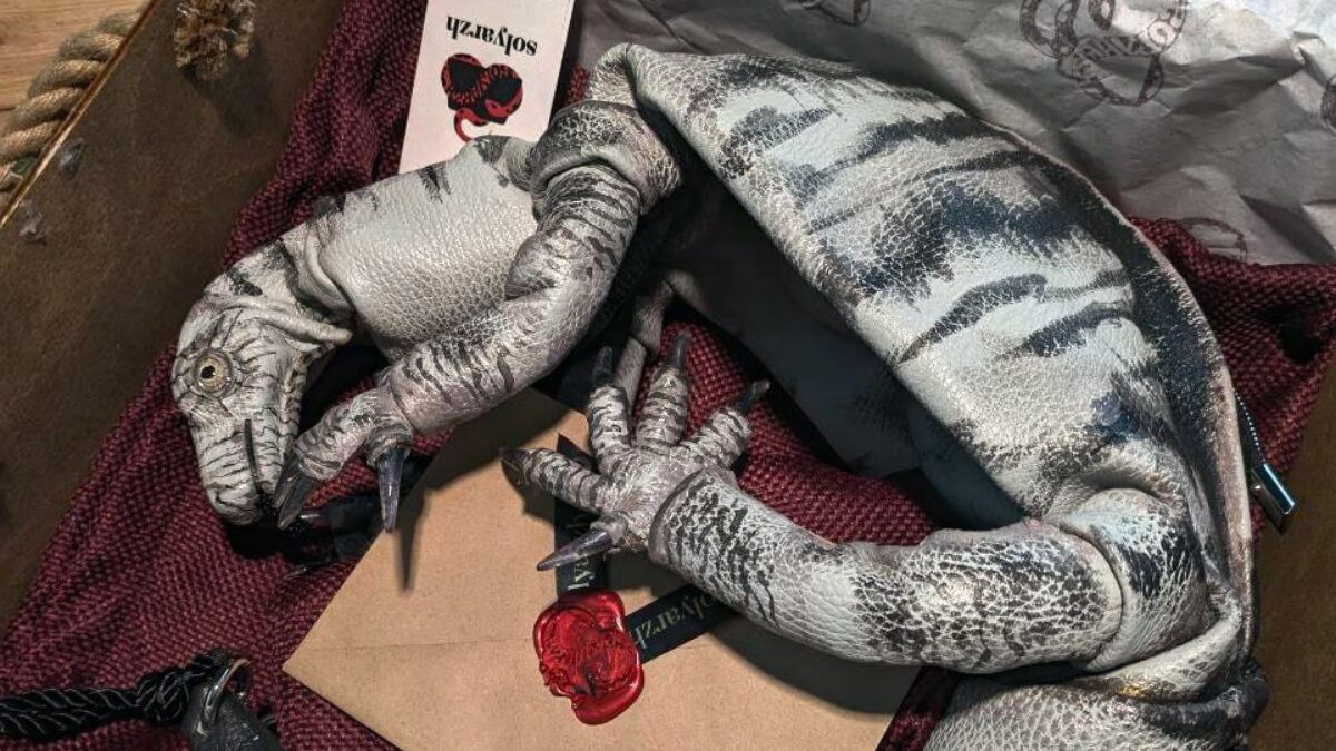 У её изделий нет лекал. Всё, что мастерица создаёт, изобретает сама с нуля. Потому что для Марины важна идея. Например, у сумки-варана двигаются лапы и голова, а в глазах, которые она постоянно использует в работе, можно даже разглядеть уникальный рисунок радужки.