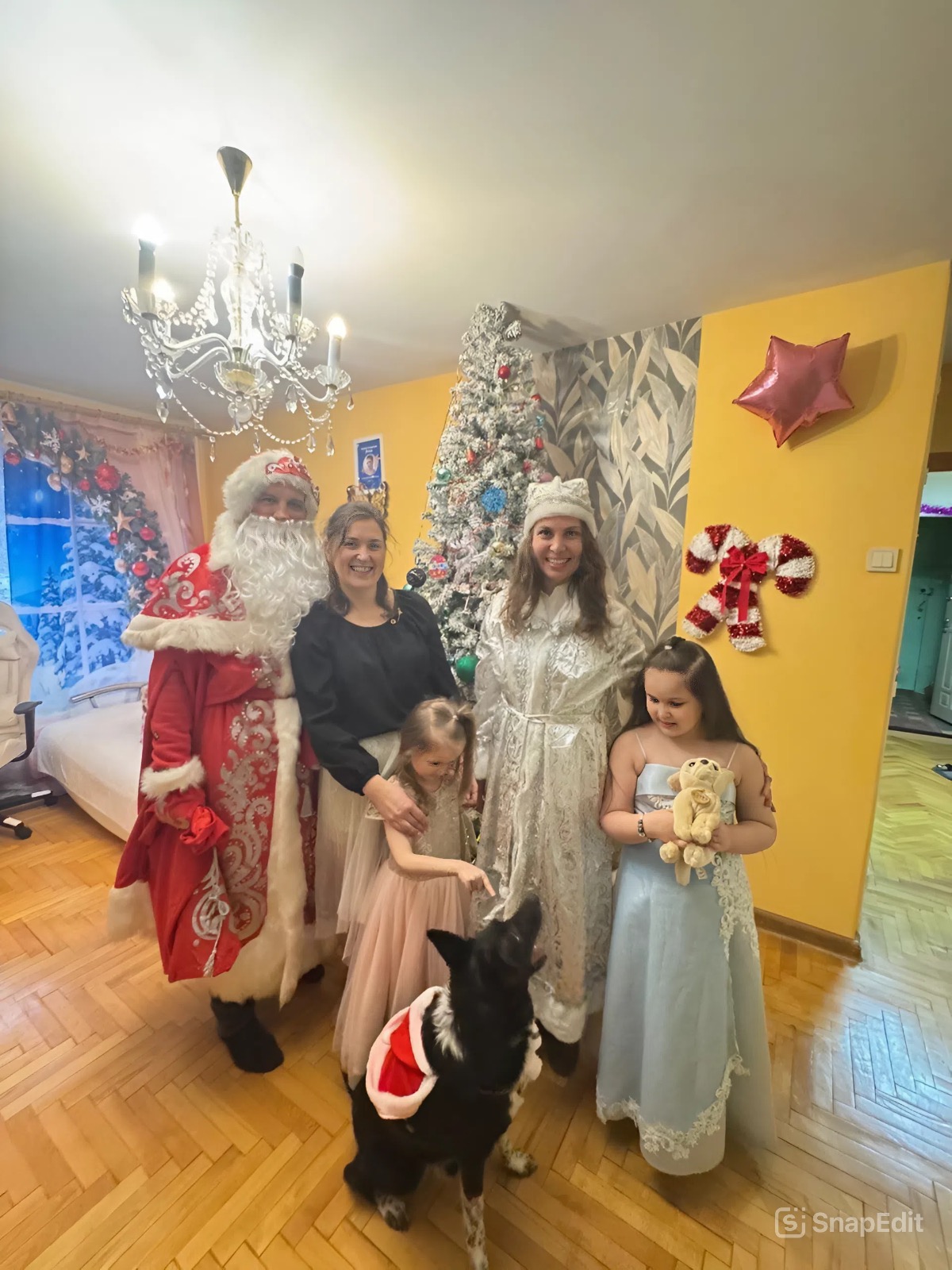 В Москве прошла предновогодняя благотворительная акция – «Дед Мороз приходит в дом». Волонтёры, переодевшись в костюмы сказочных героев, вместе с псом-канистерапевтом поздравили многодетную семью.