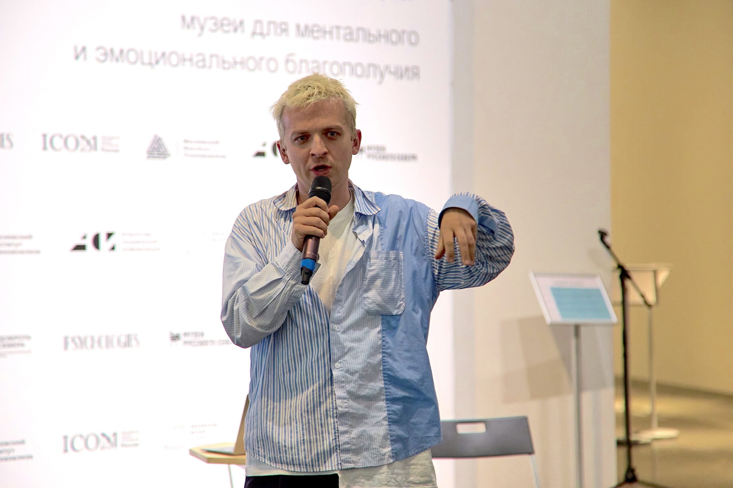 Сурдопедагог и переводчик русского жестового языка Влад Колесников. Фото: Дмитрий Жаров, пресс-служба Еврейского музея и центра толерантности