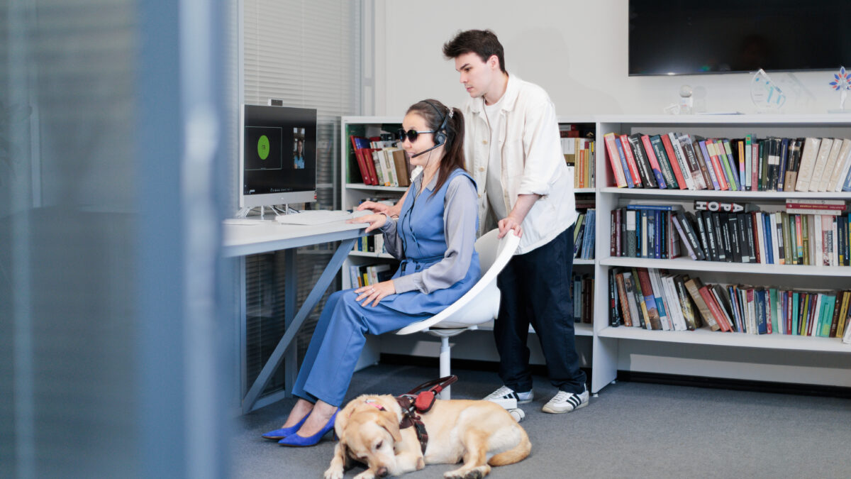 В России около 39 тысяч студентов с инвалидностью. Для старта в карьере многим из них нужна поддержка. Фото: www.photo.evland.ru/ Дарья Кузнецова. Модели: Арюна Соктуева, Иван Чайкин, собака-поводырь Вита.