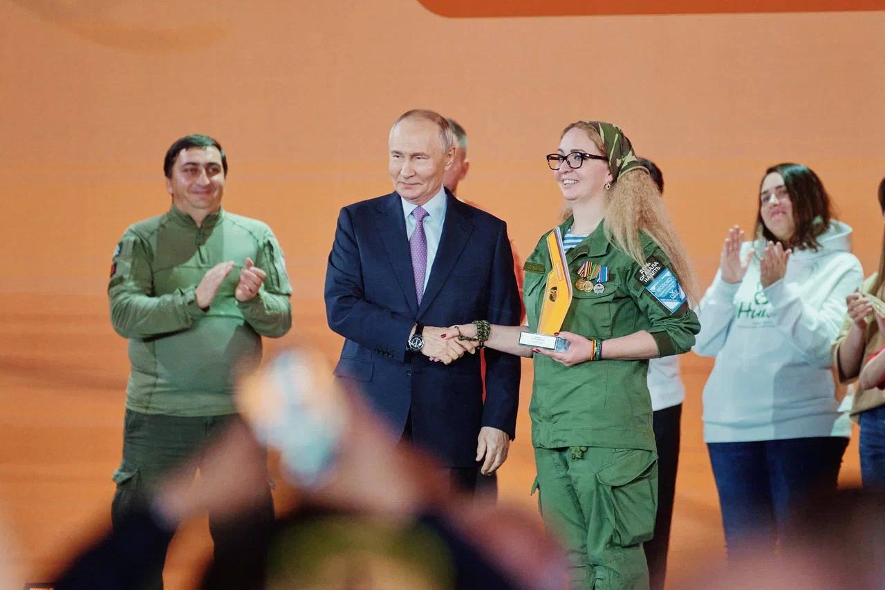 Президент России Владимир Путин вручает награду "Волонтеру года" 2024 года Марии Карпенко. Фото: Добро.рф