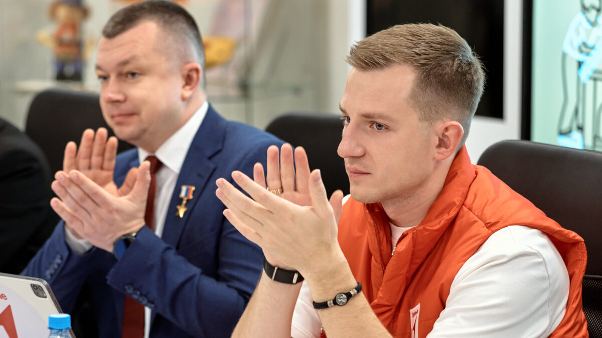 Артур Орлов, Герой России, участник президентской программы «Время героев», Председатель Правления Движения Первых и Артем Метелев, Председатель Комитета Госдумы по молодёжной политике, руководитель Ассоциации Добро.рф. Фото: пресс-служба Ассоциации Добро.рф