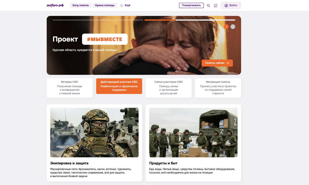 Ассоцаиция Добро.рф представила новый сервис – навигатор #МЫВМЕСТЕ, реализованный совместно с Государственным фондом «Защитники Отечества». Он объединил меры поддержки для бойцов и ветеранов СВО, а также их семей.