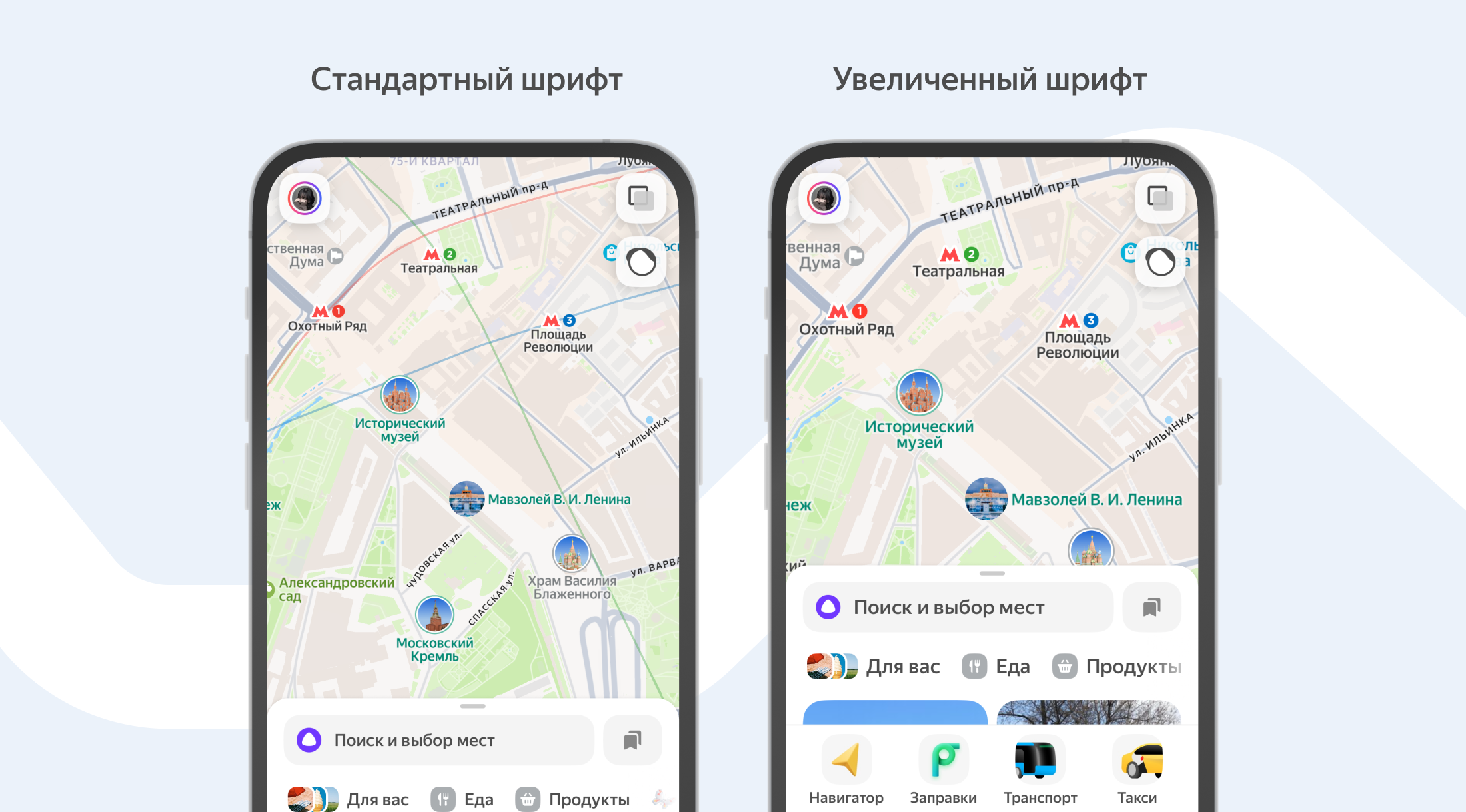 Чтобы увеличить шрифт и иконки, достаточно зайти в системные настройки телефона и выбрать подходящий размер. Например, в iOS эти настройки находятся в разделе «Универсальный доступ», а в смартфонах на Android – в разделе настроек экрана. Шрифт в Картах автоматически подстроится под выбранные параметры, что особенно ценно для слабовидящих пользователей. Сейчас доступно три режима увеличения: немного крупнее, среднего размера и самый крупный.